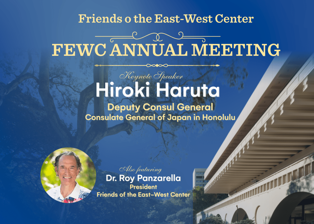 You are cordially invited to the Friends of the East-West Center Annual Meeting featuring keynote speaker Deputy Consul General Hiroki Haruta of the Consulate General of Japan in Honolulu.