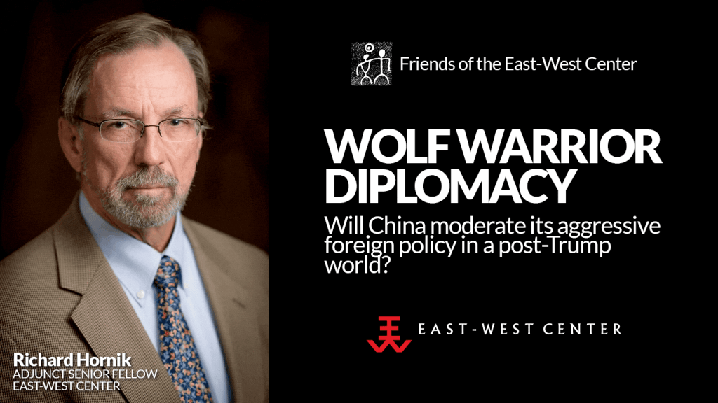 | The Covid-19 pandemic has accelerated an already precipitous decline in US-China relations. Donald Trump’s efforts to appear tough on China deserve much of the blame for the worst bilateral ties in three decades, but Xi Jinping’s assertive foreign and domestic policies have played a crucial role as well. Those initiatives began before Trump took office and continued even when they have harmed China’s efforts to enhance its global status in the vacuum created by Trump’s America Only positions. What lies behind China’s Wolf Warrior foreign policy and might Xi dial back his belligerence as Joe Biden takes office? Richard Hornik is an Adjunct Senior Fellow at the East-West Center. During his 30-year career in journalism he served as executive editor of AsiaWeek, News Service director of Time Magazine, and Time’s bureau chief in Warsaw, Boston, Beijing and Hong Kong. He co-authored Massacre in Beijing: China’s Struggle for Democracy, and has written for Foreign Affairs, Fortune, the Harvard Business Review, Smithsonian, The New York Times and Wall Street Journal. He has an M.A. in Russian Studies from George Washington University and a B.A. in political science from Brown University. He was a Lecturer at Stony Brook University from 2007-19 and was a Visiting Lecturer at Hong Kong in 2012 and at the University of Hawaiʻi at Mānoa in 2015. He is a member of the Council on Foreign Relations. |