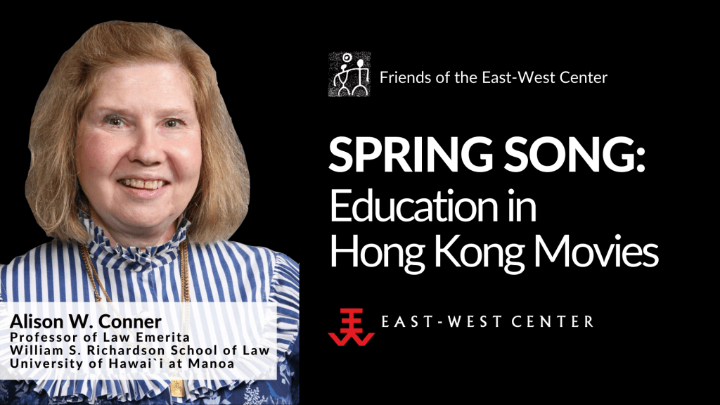 | This talk will introduce three movies made between 1959-1961 by MP&GI (Motion Picture & General Investment) Ltd., a subsidiary of Singapore’s Cathay Organization founded in 1956 by Loke Wan Tho. A competitor of the larger and now better known Shaw Brothers, MP&GI made most of its movies in Mandarin rather than Cantonese, and its films were popular with audiences throughout Southeast Asia as well as in Hong Kong and Taiwan. During its peak years of 1957 to 1964, MP&GI offered viewers a broad range of films, predominantly urban romances, musicals, comedies and social or family dramas, often focusing on the middle class. The movies discussed at this seminar provide us with images of education in Hong Kong during a critical time and at three different levels: Education of Love 愛的教育(1961), which is set in primary school; Beauty Parade體育皇后 (also 1961), set in middle school; and Spring Song 青春兒女(1959), which takes place at a university and is probably the first Hong Kong film to depict college life. All three were filmed during a period of educational expansion as well as at the high point of Cathay movies, and they remain of interest even now, with themes that can still resonate with Hong Kong audiences. Alison W. Conner is Professor of Law Emerita at the William S. Richardson School of Law, University of Hawai`i/Mānoa. Before joining the Law School in 1995, she taught law and did research in China, Singapore, Hong Kong and Taiwan for twelve years; in 2004, 2014 and 2015 she returned to teach in China, and during 2016 and 2017 she was a visiting scholar in Hong Kong and Taiwan. She writes on Chinese legal history and depictions of the legal system in Chinese movies, including “Don’t Change Your Husband: Divorce in Early Chinese Movies” and “Justice and Law at the (1980) Chinese Movies.” |