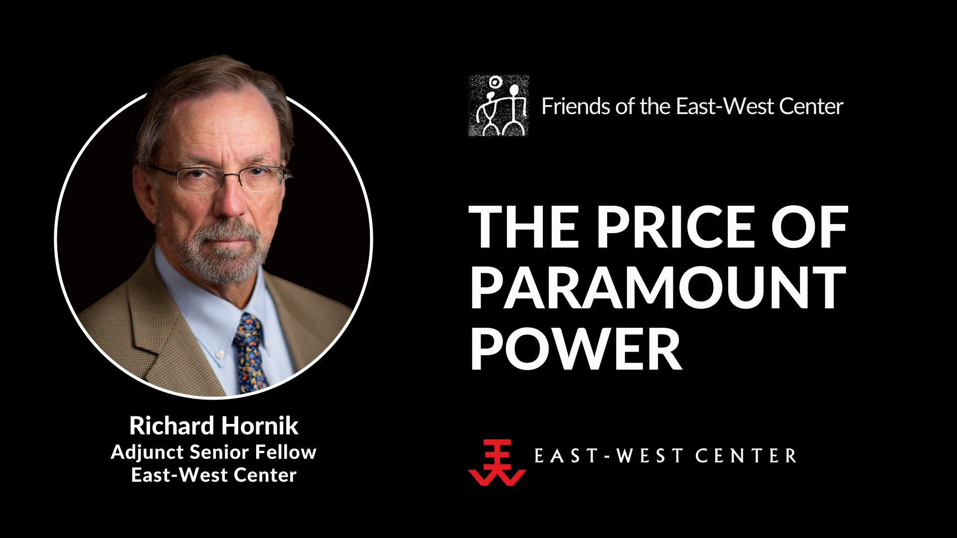 Richard Hornik is an Adjunct Senior Fellow at the East-West Center. During his 30-year career in journalism, he served as executive editor of AsiaWeek, News Service director of Time Magazine, and Time’s bureau chief in Warsaw, Boston, Beijing and Hong Kong. He co-authored Massacre in Beijing: China’s Struggle for Democracy, and has written for Foreign Affairs, Fortune, the Harvard Business Review, Smithsonian, The New York Times and Wall Street Journal. He has an M.A. in Russian Studies from George Washington University and a B.A. in political science from Brown University. He was a Lecturer at Stony Brook University from 2007-19 and was a Visiting Lecturer at Hong Kong in 2012 and at the University of Hawaiʻi at Mānoa in 2015. He is a member of the Council on Foreign Relations.