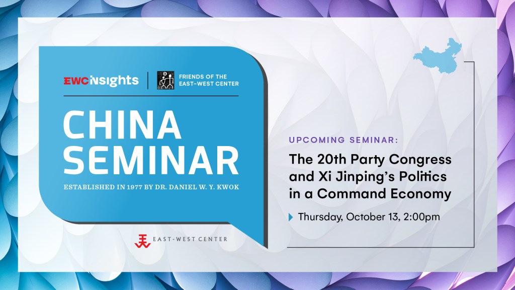 The China Seminar was founded by Dr. Daniel W.Y. Kwok 45 years ago. Under his guidance, it became a signature program of the Friends of the East-West Center (FEWC) in 2009. The program provides an informal venue for China experts, such as scholars, diplomats, and journalists, to present talks on aspects of China that interest the community and members of the Friends. Topics include politics, economics, social issues, history, culture, food, arts, and many other subjects. Though Dr. Kwok has recently retired from his involvement with the program, the FEWC and the East-West Center remain committed to continuing this important program.
