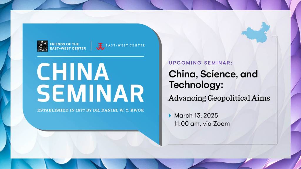 The China Seminar was founded by Dr. Daniel W.Y. Kwok in 1977. Under his guidance, it became a signature program of the Friends of the East-West Center (FEWC) in 2009. The program provides an informal venue for China experts, such as scholars, diplomats, and journalists, to present talks on aspects of China that interest the community and members of the Friends. Topics include politics, economics, social issues, history, culture, food, arts, and many other subjects.