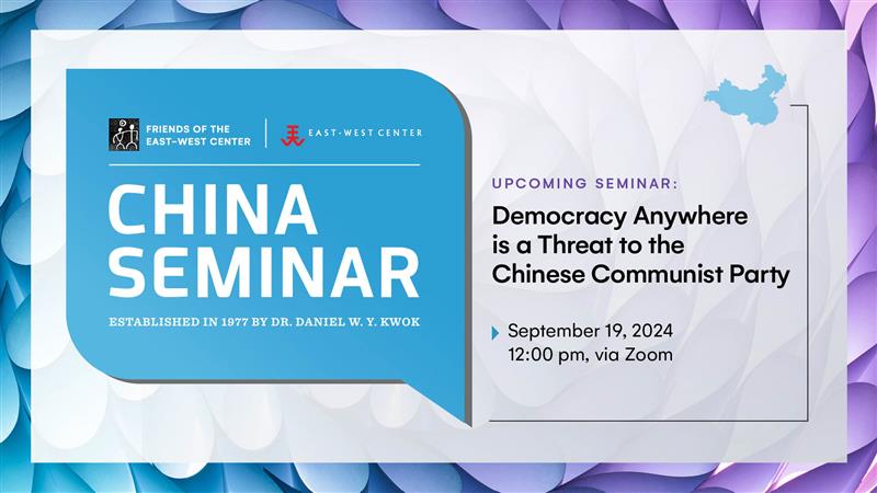 The China Seminar was founded by Dr. Daniel W.Y. Kwok 47 years ago. Under his guidance, it became a signature program of the Friends of the East-West Center (FEWC) in 2009. The program provides an informal venue for China experts, such as scholars, diplomats, and journalists, to present talks on aspects of China that interest the community and members of the Friends. Topics include politics, economics, social issues, history, culture, food, arts, and many other subjects. Though Dr. Kwok has recently retired from his involvement with the program, the FEWC and the East-West Center remain committed to continuing this important program.