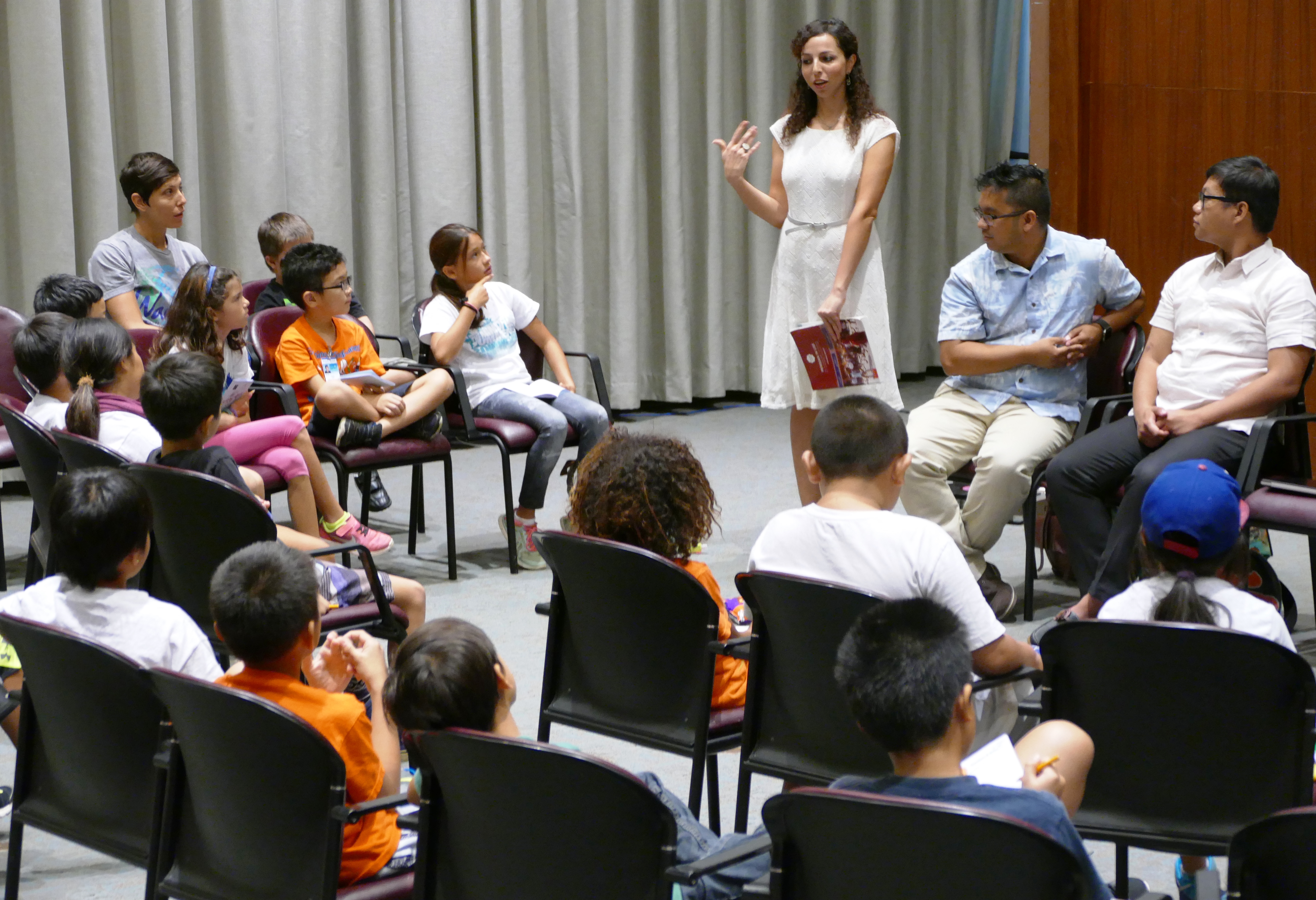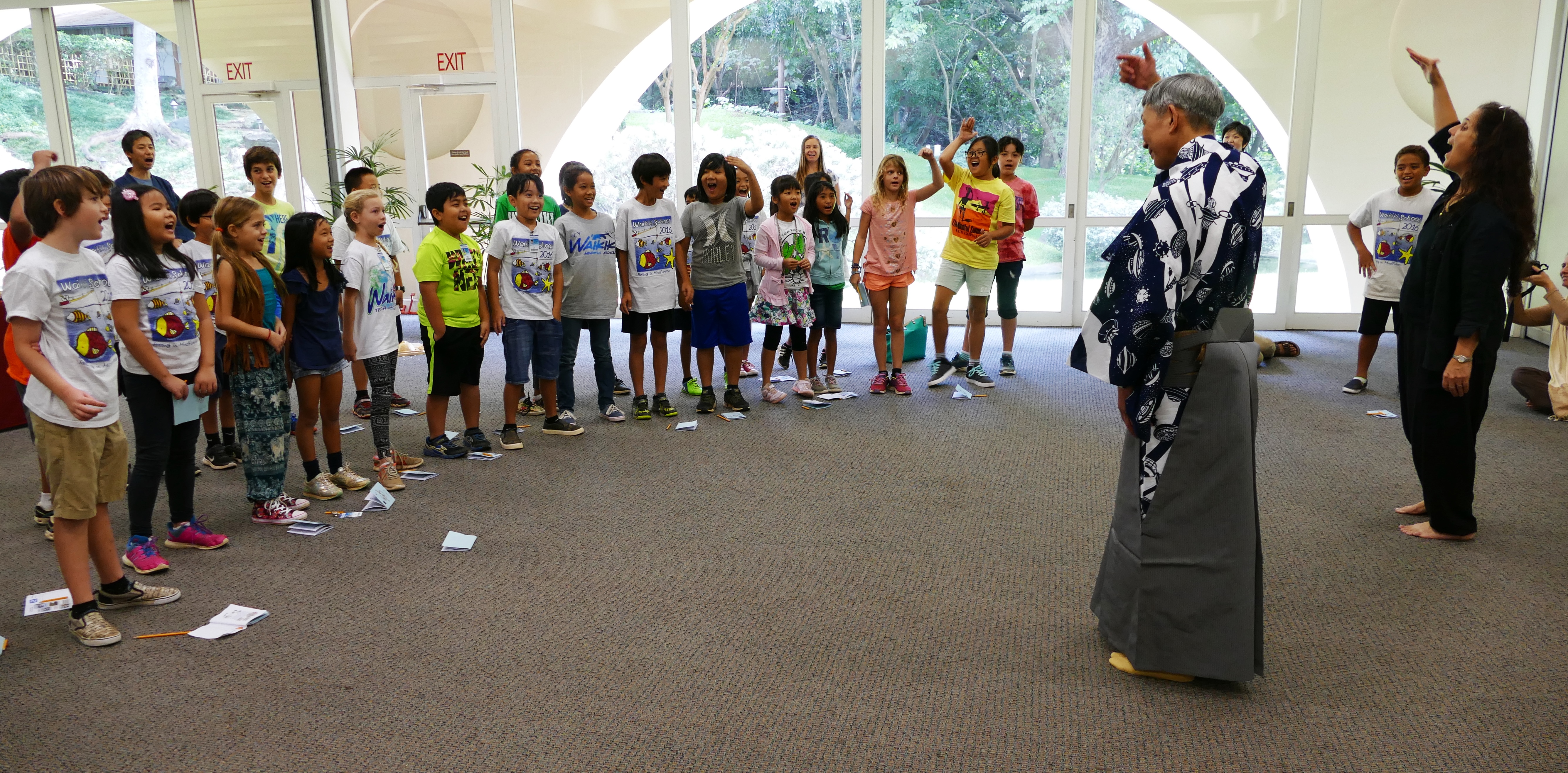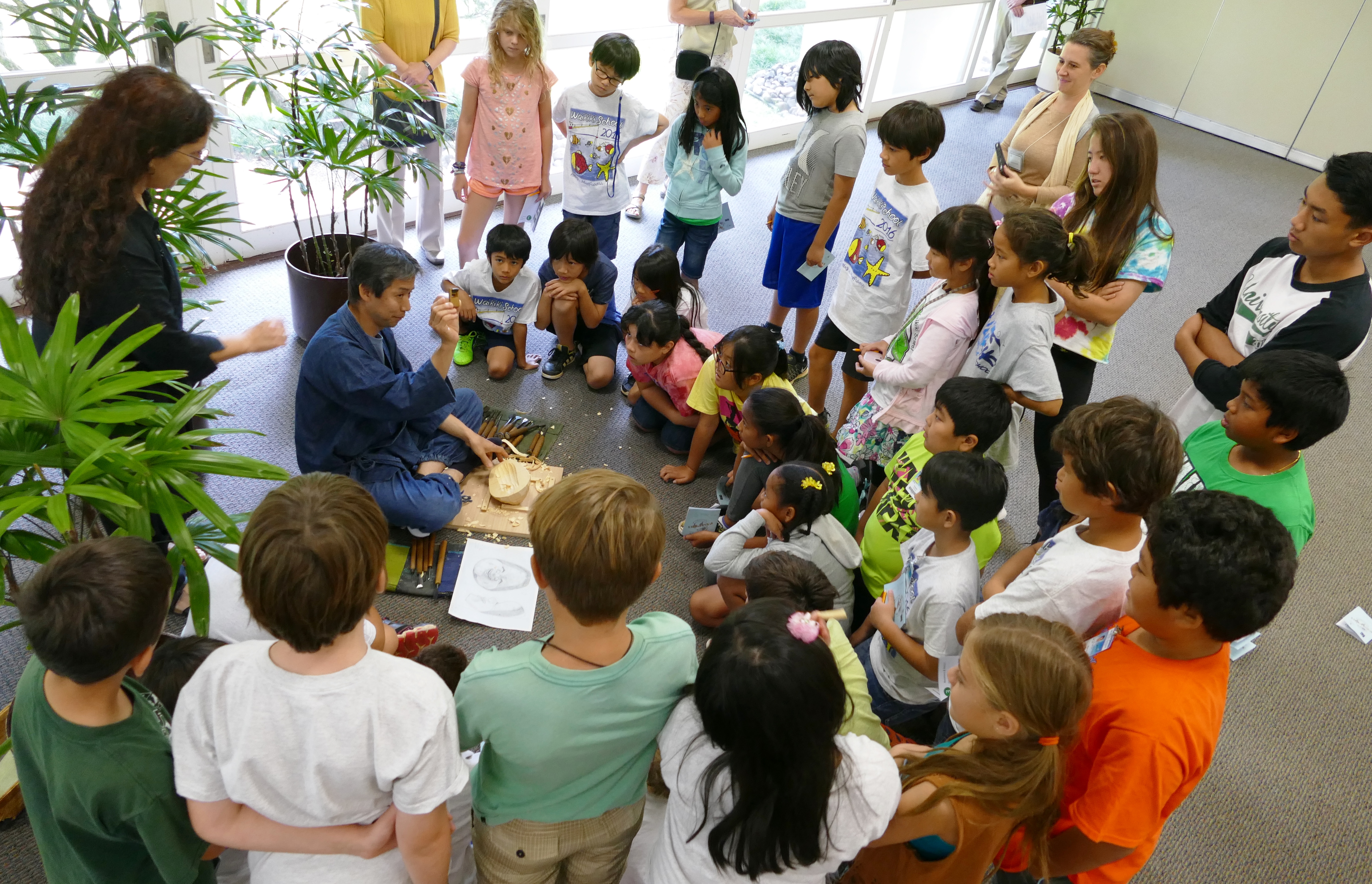 On Nov. 17, 2106, the Friends of the East-West Center, in cooperation with the Hawai`i Dept. of Education, brought 150 students from two local public elementary schools to EWC to give them an opportunity to learn about the Center and countries in the Asia-Pacific region. Activity stations included cross-cultural dialogue with EWC students, a tour of the Center’s campus, cooperative learning through an EWC Gallery exhibition on Okinawa and demonstrations of traditional Japanese mask-making and theater, and hands-on learning about Asia Pacific countries through cultural items from around the region.
